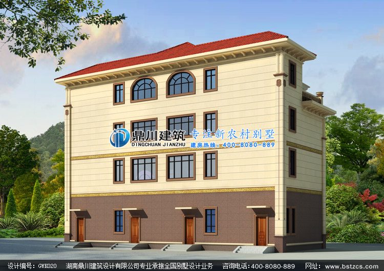 > 設(shè)計(jì)案例 > GWK020新農(nóng)村四層雙拼別墅設(shè)計(jì)圖紙效果圖,農(nóng)村四層自建別墅設(shè)計(jì)圖紙外觀效果圖