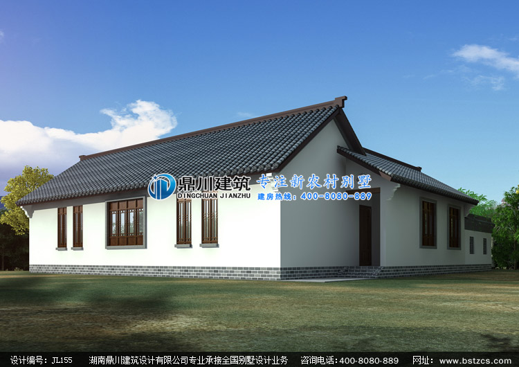 首頁 > 設(shè)計(jì)案例 > JL155農(nóng)村一層中式三合院設(shè)計(jì)圖紙外觀效果圖,鼎川建筑一層中式自建房設(shè)計(jì)圖紙