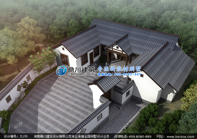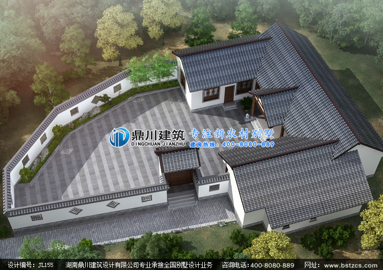 JL155農(nóng)村一層中式三合院設(shè)計(jì)圖紙外觀效果圖,鼎川建筑一層中式自建房設(shè)計(jì)圖紙