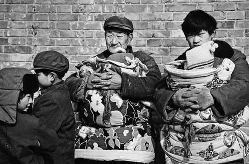 ▲1983年,河南農(nóng)村,抱孩子的爺爺和父親。