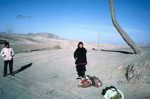 ▲1980年,甘肅某地,一個(gè)在村頭等待公共汽車的婦女。