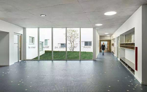 學(xué)校的一層是一個幼兒園和一個學(xué)齡前兒童的活動場地,其他兩層是小學(xué),操場位于幼兒園的屋頂。較大一點的兒童可以直接從屋頂操場到達地面,不用穿過幼兒園區(qū)域。