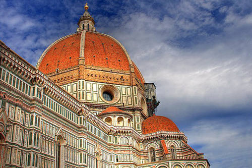 意大利佛洛倫薩大教堂穹頂于1420年至1436年間建造,雖然橫跨長(zhǎng)度為140英尺(約42米),但此穹頂在建造時(shí)并沒(méi)有使用可支持的框架。建筑工程師菲利普·布魯內(nèi)萊斯基在設(shè)計(jì)建造該穹頂時(shí)曾大膽預(yù)言,無(wú)需任何內(nèi)部腳手架,這在當(dāng)時(shí)那個(gè)年代是不可能做到的。但是,他發(fā)明了一種全新的方式分擔(dān)圓頂周圍的荷載,所以圓頂不會(huì)分裂。他還將一些石頭和鐵緊密粘合在一起,形成鎖鏈,并用人字斜紋磚堆砌保證了圓頂不會(huì)開(kāi)裂。