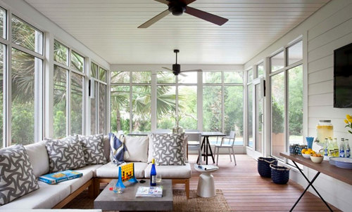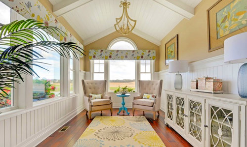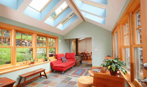 在別墅的一角,留一個(gè)小空間,建一間陽光房。在閑暇之余,忙里偷閑,就那么安靜的坐在陽光房里,停下來,感受生活之美。清晨,陽光透過落地窗撒到地面,金色的光芒,填滿了整個(gè)房間.....很喜歡這種感覺,簡單而讓人舒適。想要一間陽光房,不用太大,可以賞花望月,休憩,品茶。