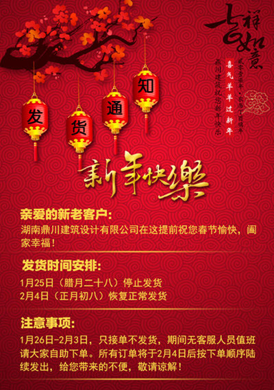 鼎川建筑2017年春節(jié)發(fā)貨通知