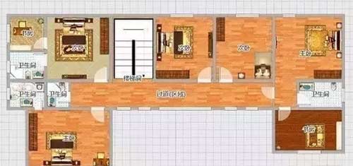 二層建筑面積為172平方米,共有5個(gè)臥室,二胎政策放開了,所以中間計(jì)劃了兩個(gè)小孩的臥室。