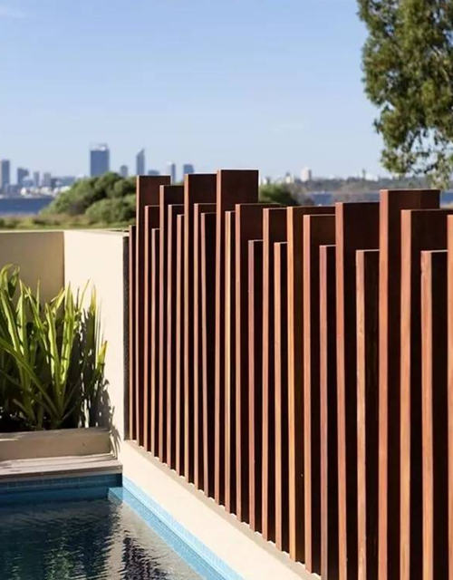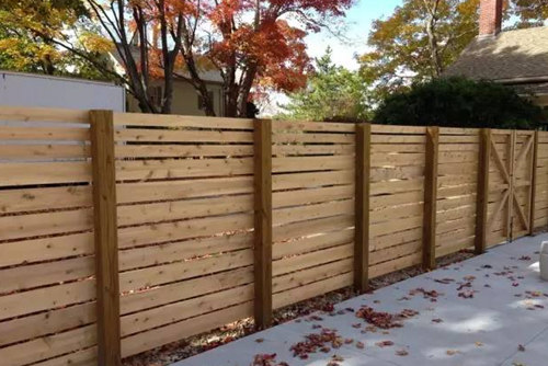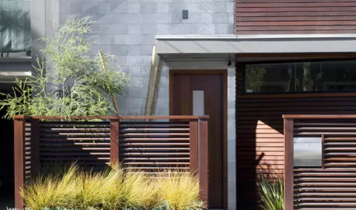 木質圍墻。木材是最有溫情的材料,溫和細膩的質感是大家的最愛。所以木質的小院圍墻是最常見的,橫平豎直間是大自然最真情的流露。