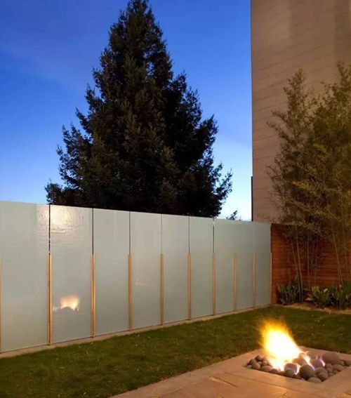 玻璃圍墻。玻璃透光的特點,讓圍墻有了更多互動的可能,不論是人影、樹影、光影,都能與其產生有趣的互動,以玻璃為幕布,做一個生動的圍墻。