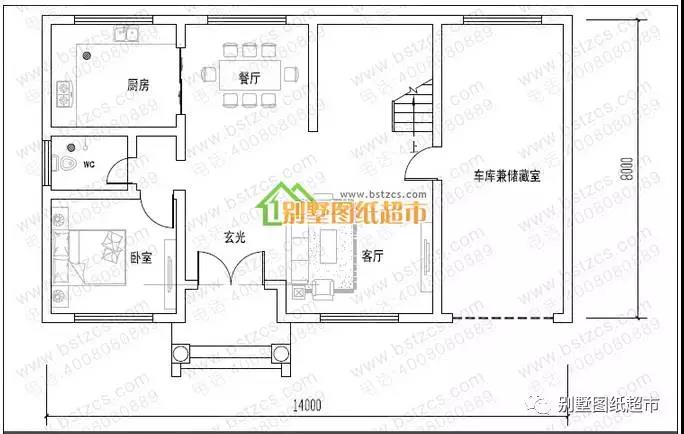 一 層:客廳、臥室、廚房、餐廳、衛(wèi)生間、車庫(兼儲(chǔ)藏室)