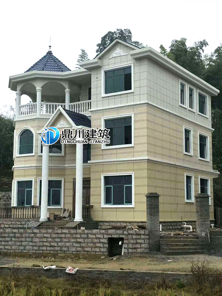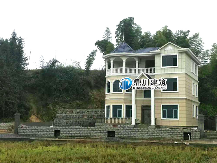 就此款三層復式歐式別墅自建房案例實拍來說:整棟別墅歐式風格明顯,外墻裝飾淡雅,清新,不過分夸張。處處彰顯出精致典雅與建筑的獨特之美。門頭的設計暗合客廳的復式設計之意,大圓柱立于大門兩側(cè)更是彰顯尊貴,方形窗與弧形窗的相結(jié)合更顯大方,是整體外觀效果的點睛之筆!還有三樓的八角涼亭。更是休閑的好地方!