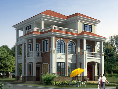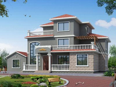 L090三層帶露臺農(nóng)村別墅設(shè)計(jì)效果圖,三層別墅設(shè)計(jì)
