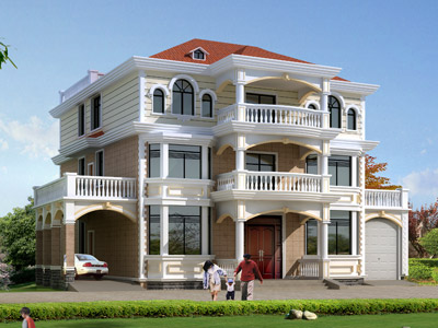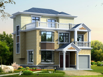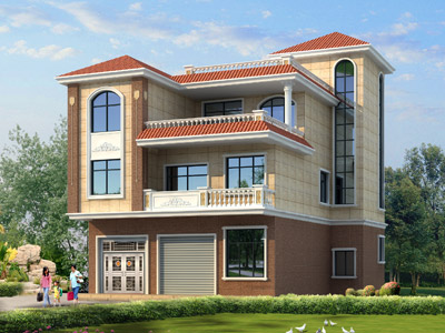 W0125新農(nóng)村三層帶車庫別墅外觀效果圖,三層別墅設(shè)計(jì)圖