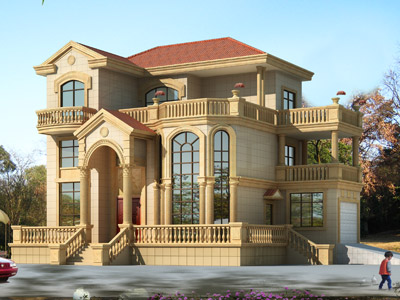 M093漂亮的歐式三層豪華別墅設(shè)計(jì)外觀效果圖,三層別墅設(shè)計(jì)圖