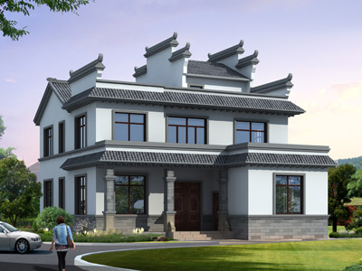 M0155漂亮的兩層半徽派小別墅設(shè)計(jì)圖,中式別墅設(shè)計(jì)外觀效果