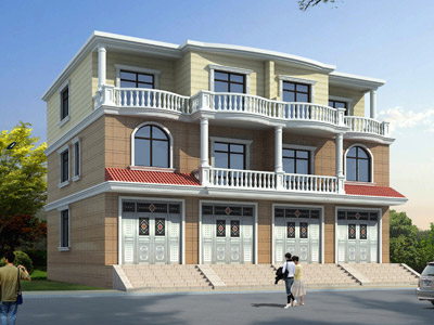 E040帶門面的三層雙拼別墅設(shè)計(jì)圖,雙拼別墅圖紙效果圖