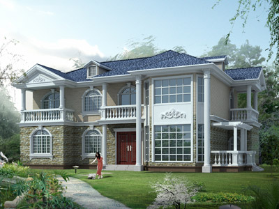 D024二層別墅圖紙外觀效果圖,二層別墅設(shè)計(jì)圖