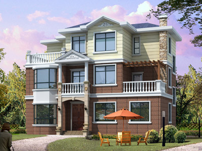L065三層帶露臺別墅設(shè)計(jì)外觀效果圖,三層別墅設(shè)計(jì)