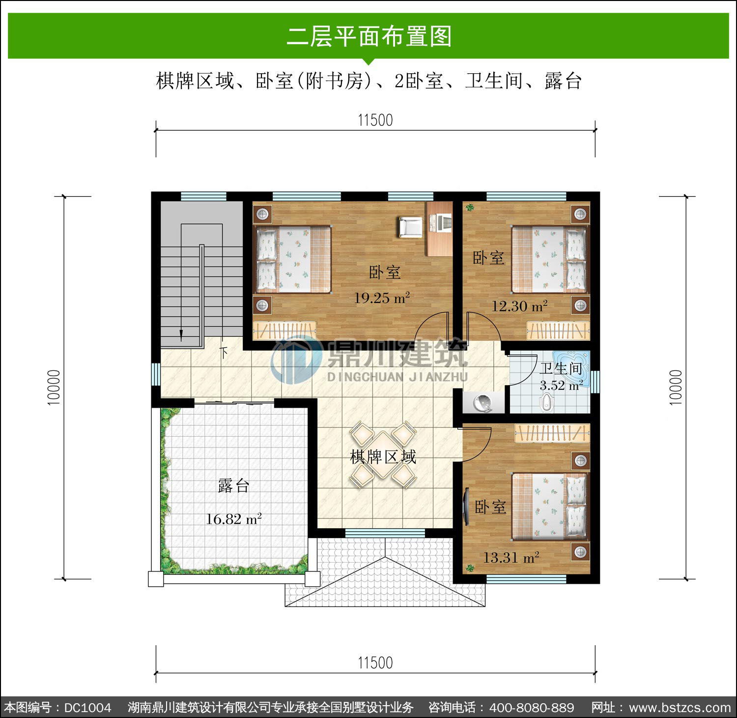 | 二 層: | 棋牌區(qū)域、臥室(附書房)、2臥室、衛(wèi)生間、露臺(tái) | |||