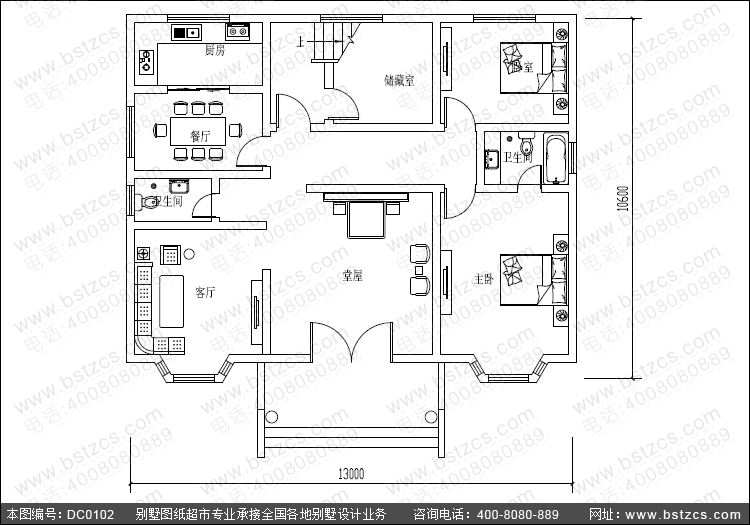 | 一 層: | 堂屋、客廳、主臥(附衛(wèi)生間)、臥室、廚房、餐廳、儲藏室、衛(wèi)生間 | |||