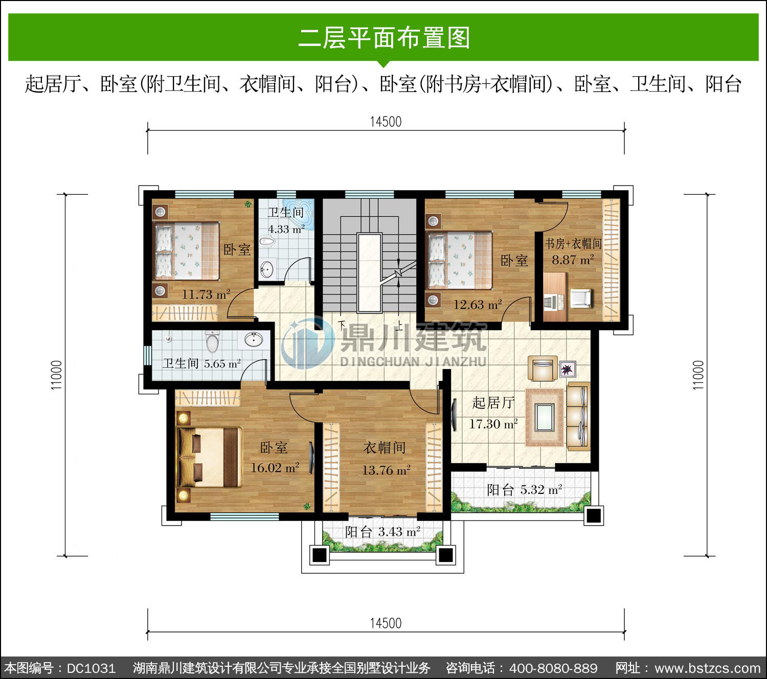新中式二層帶陽(yáng)臺(tái)別墅施工圖紙及效果圖_農(nóng)村自建別墅設(shè)計(jì),鼎川建筑