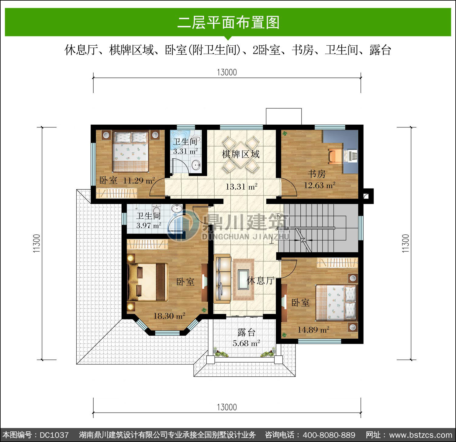 | 二 層: | 休息廳、棋牌區(qū)域、臥室(附衛(wèi)生間)、2臥室、書房、衛(wèi)生間、露臺 | |||