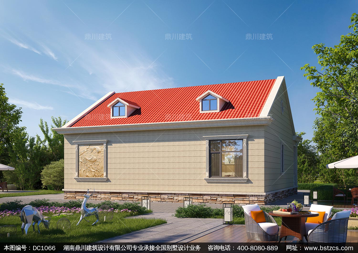 歐式一層帶堂屋別墅圖紙及外觀效果圖_農(nóng)村自建別墅設(shè)計,鼎川建筑