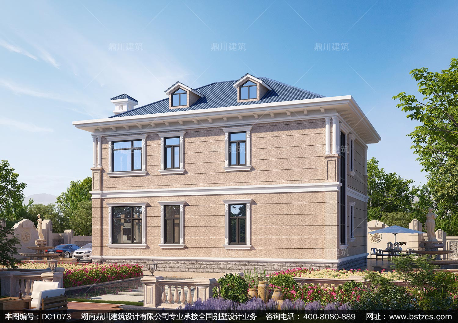 二層歐式帶露臺別墅效果圖及施工圖紙_新農(nóng)村自建別墅設(shè)計,鼎川建筑