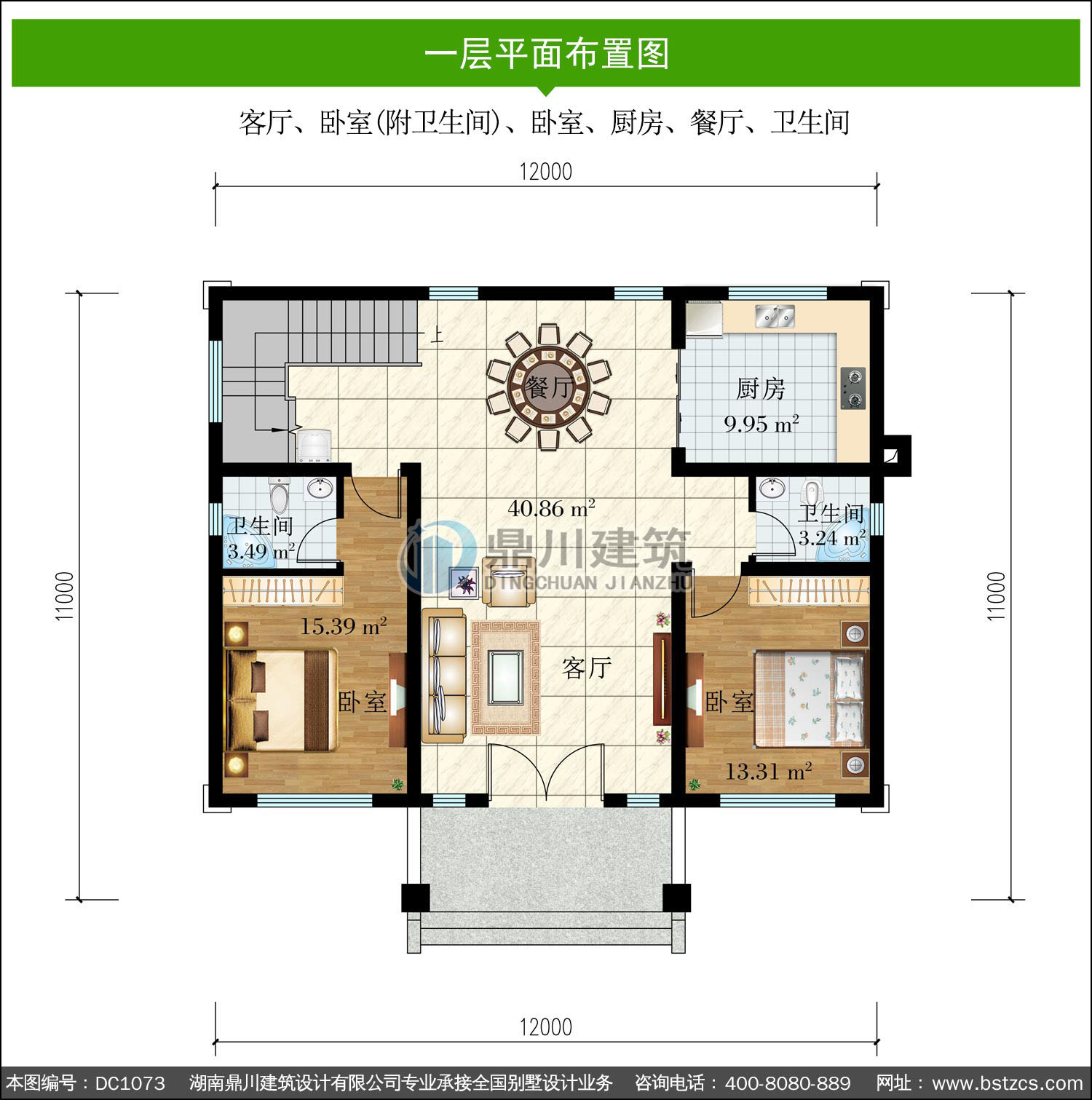 | 一 層: | 客廳、臥室(附衛(wèi)生間)、臥室、廚房、餐廳、衛(wèi)生間 | |||