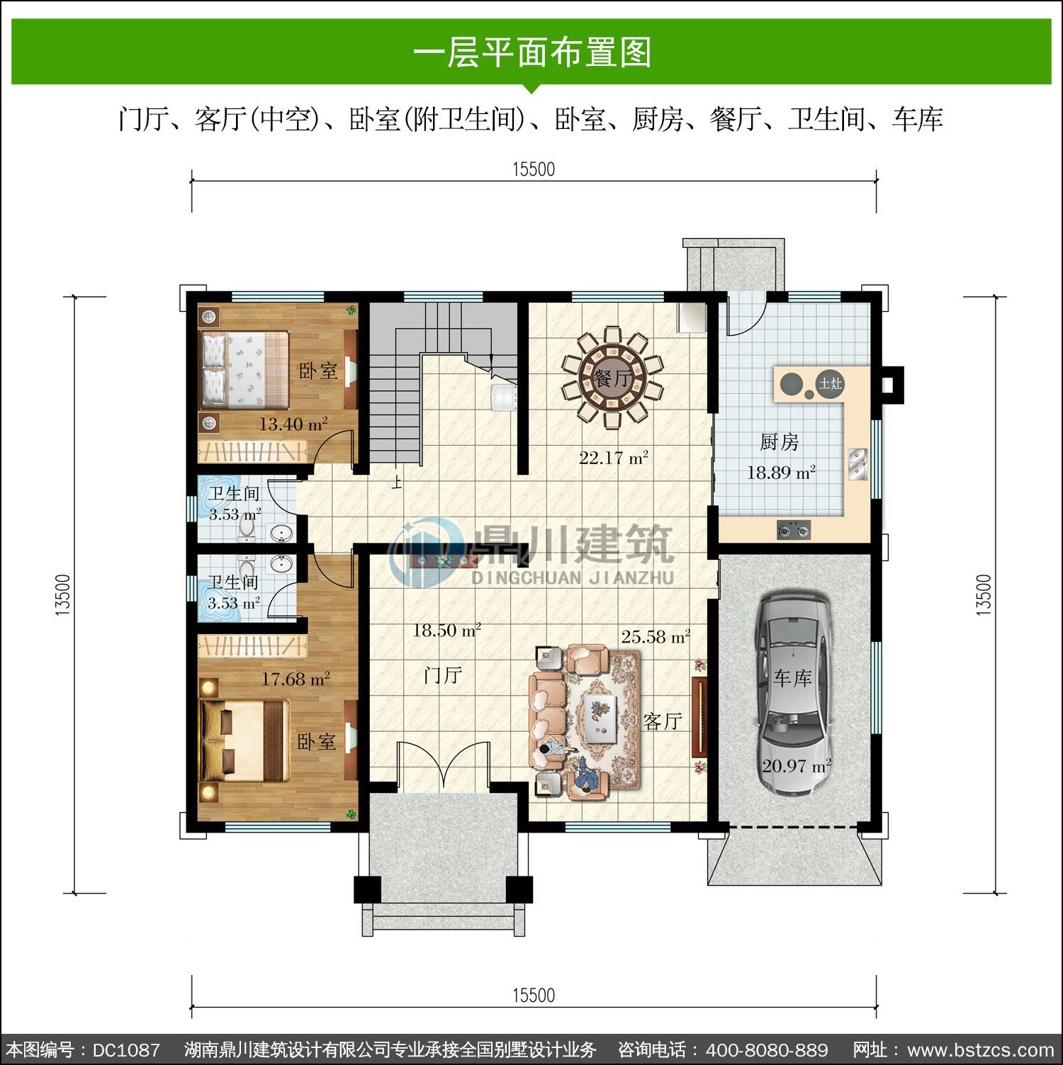 | 開間: 15.5米 | 進(jìn)深: 13.5米 | 占地面積: 199.25平方米 | 建筑面積: 404.67平方米 |
