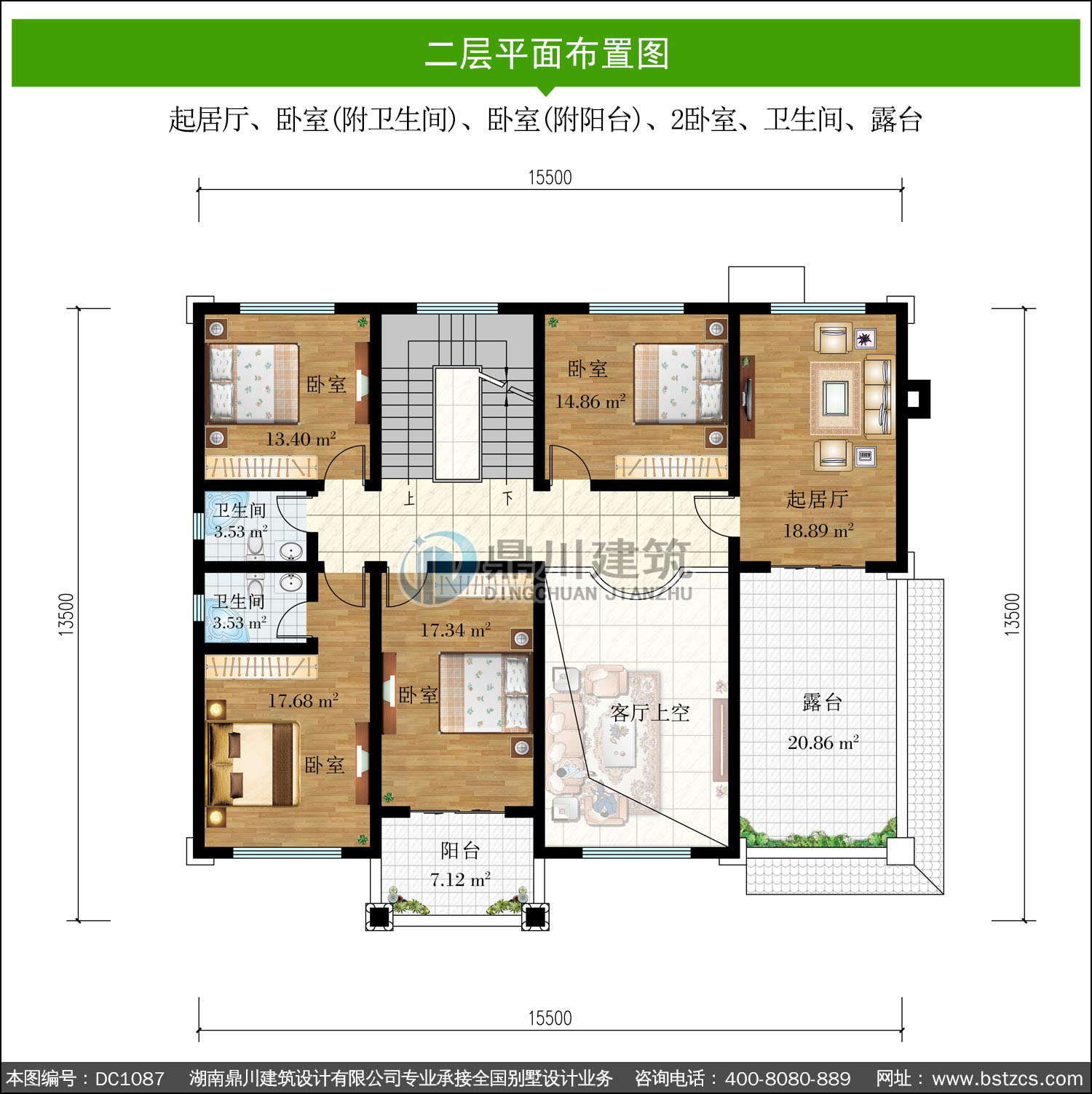 | 二 層: | 起居廳、臥室(附衛(wèi)生間)、臥室(附陽臺)、2臥室、衛(wèi)生間、露臺 | |||