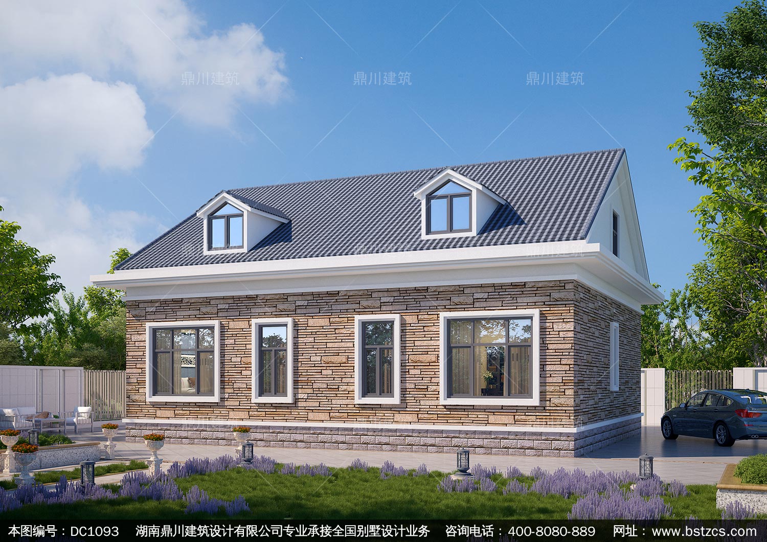 簡約一層帶閣樓別墅效果圖及施工圖紙_農(nóng)村自建別墅設計,鼎川建筑