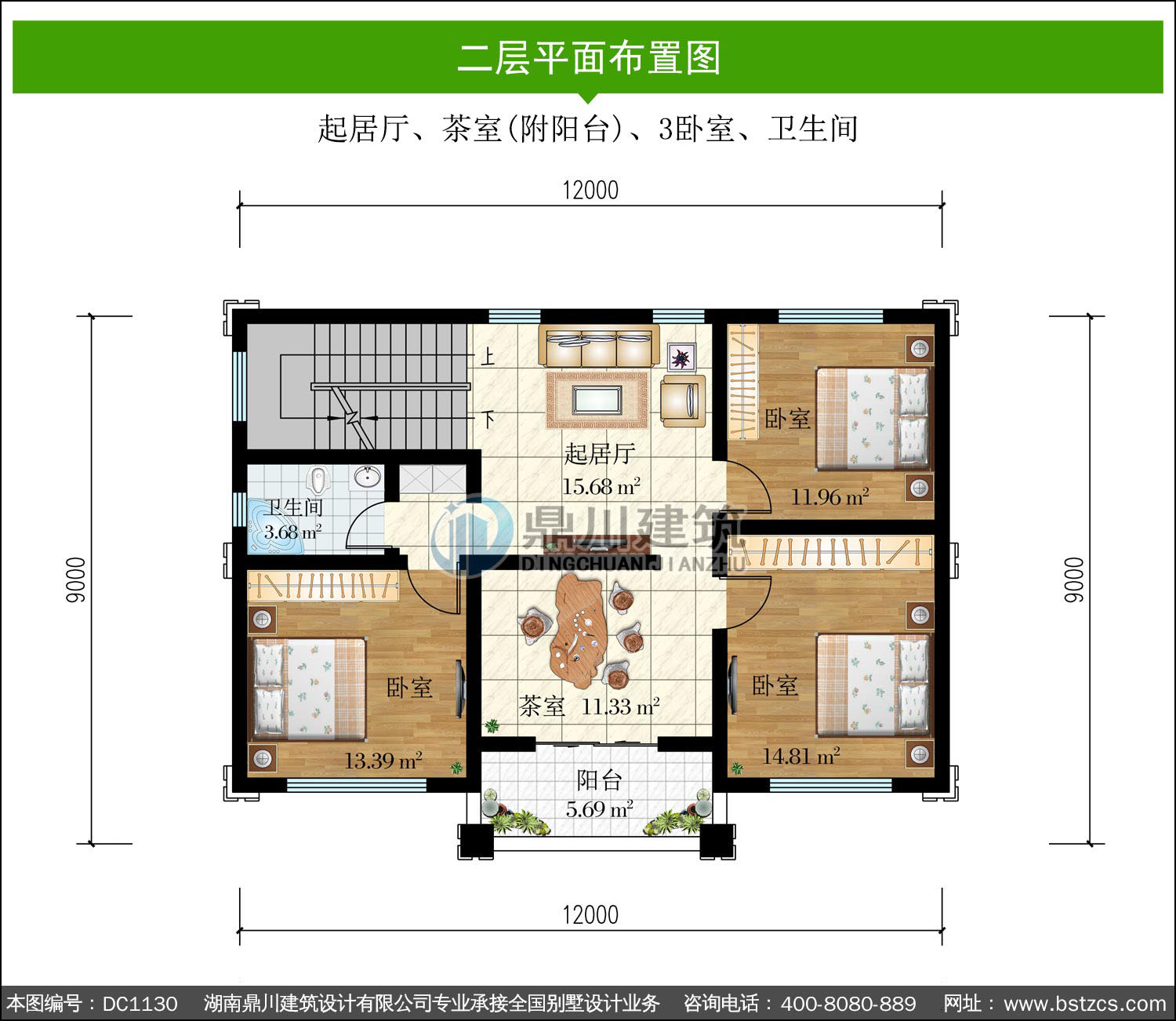 | 二 層: | 起居廳、茶室(附陽臺)、3臥室、衛(wèi)生間 | |||