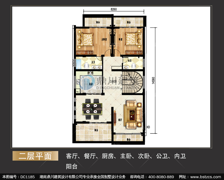 二 層: 客片、餐廳、廚房、主臥、次臥、公衛(wèi)、內(nèi)衛(wèi)、陽臺