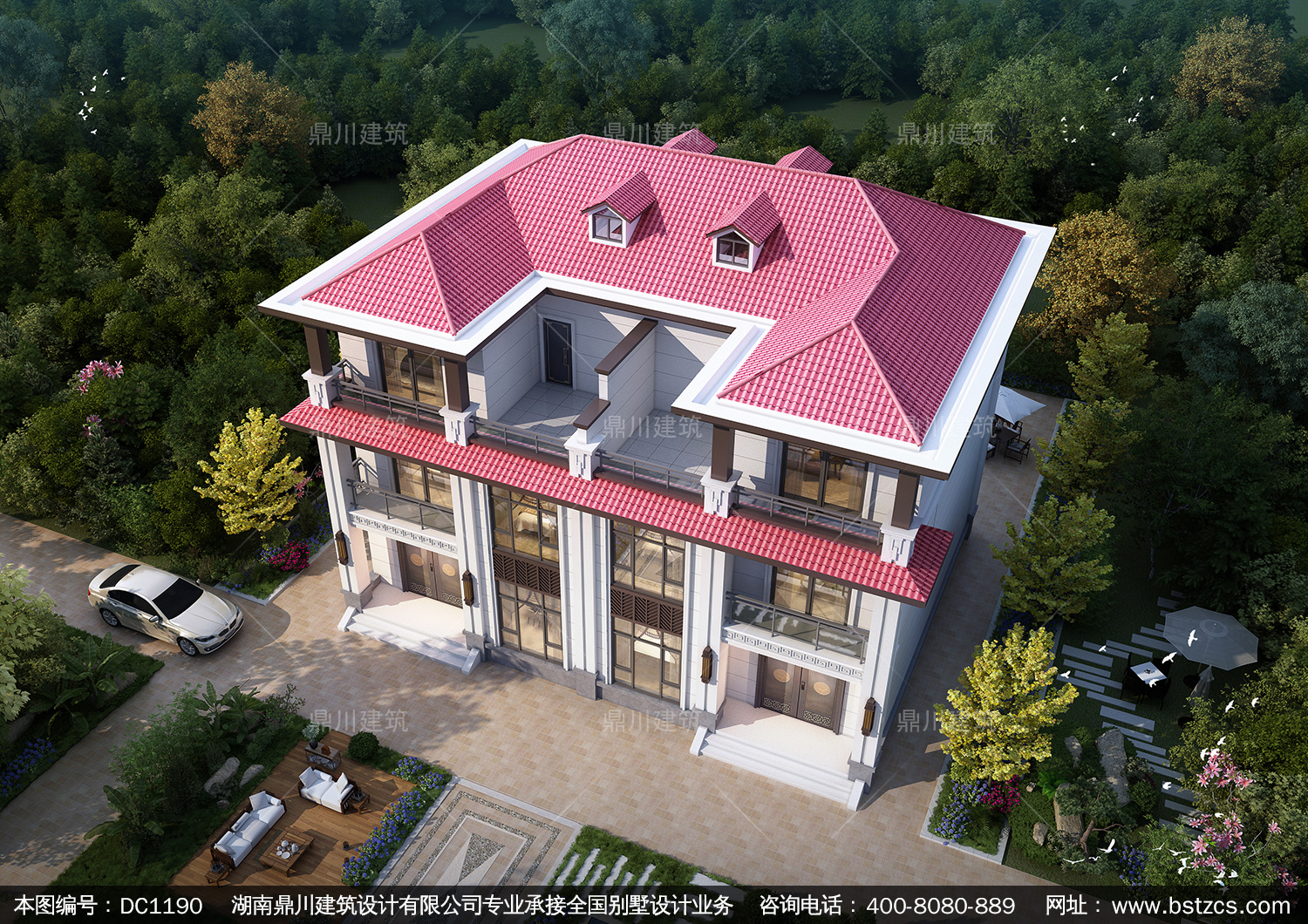 大氣新中式三層雙拼別墅圖紙及效果圖_農(nóng)村自建別墅設(shè)計,鼎川建