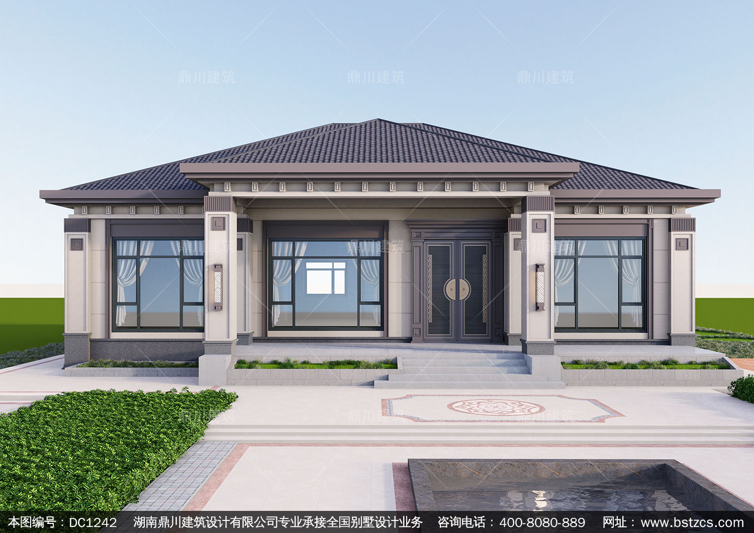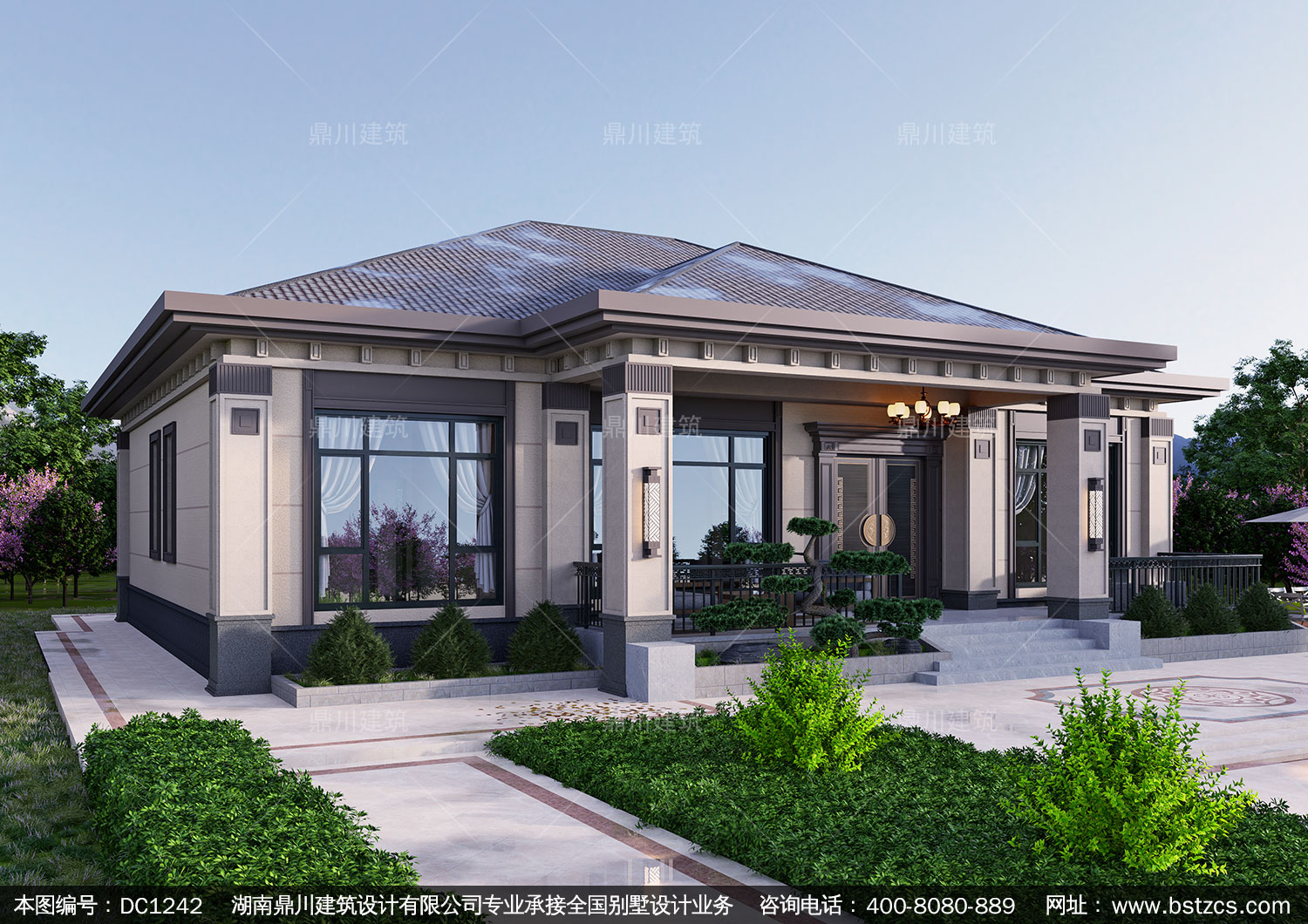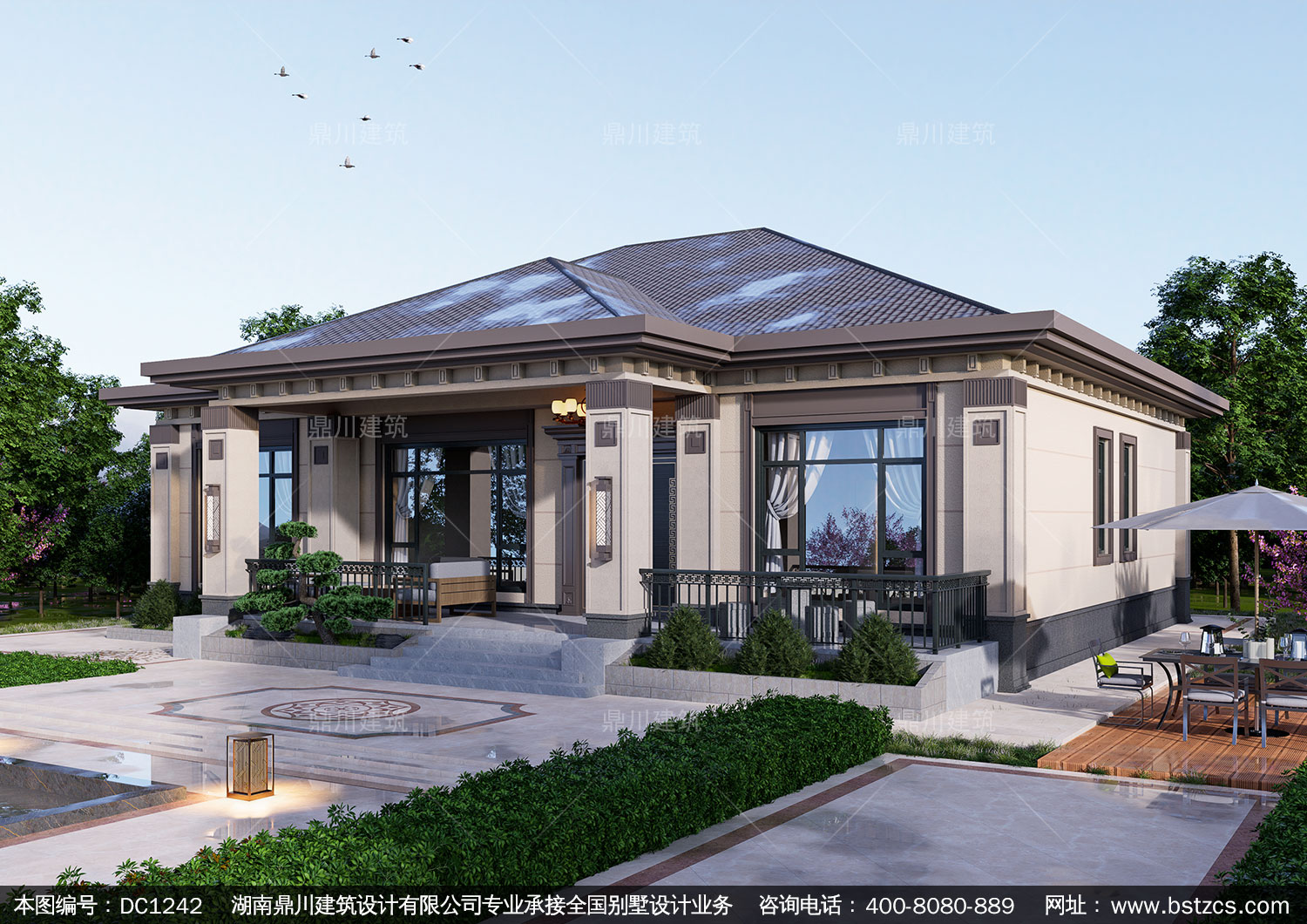 新中式一層別墅施工圖紙及效果圖_農(nóng)村自建別墅設(shè)計,鼎川建筑