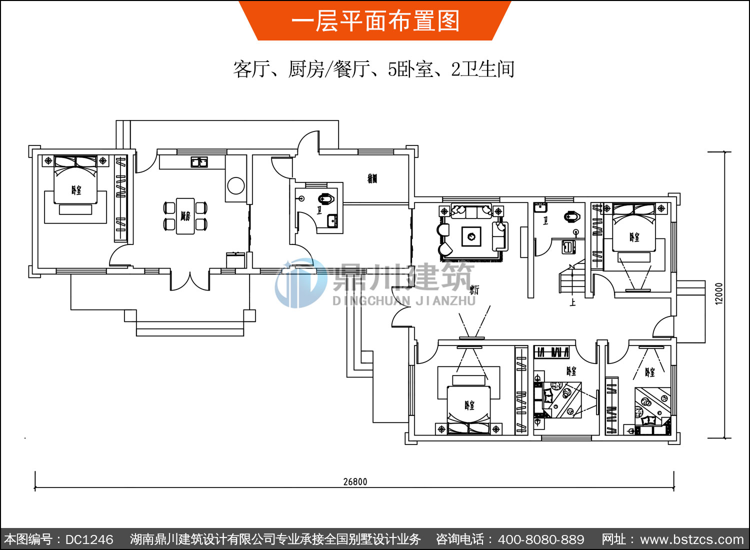 | 一 層: | 客廳、廚房/餐廳、5臥室、2衛(wèi)生間 | |||