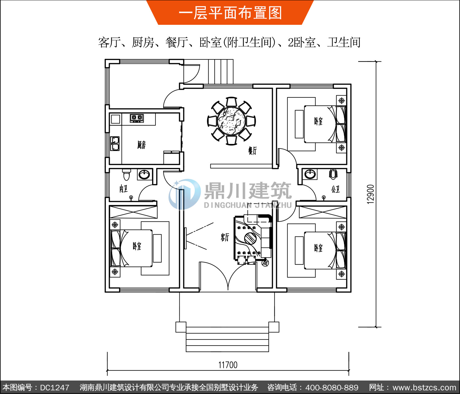 新中式一層實用別墅施工圖紙及效果圖_農村自建別墅設計,鼎川建