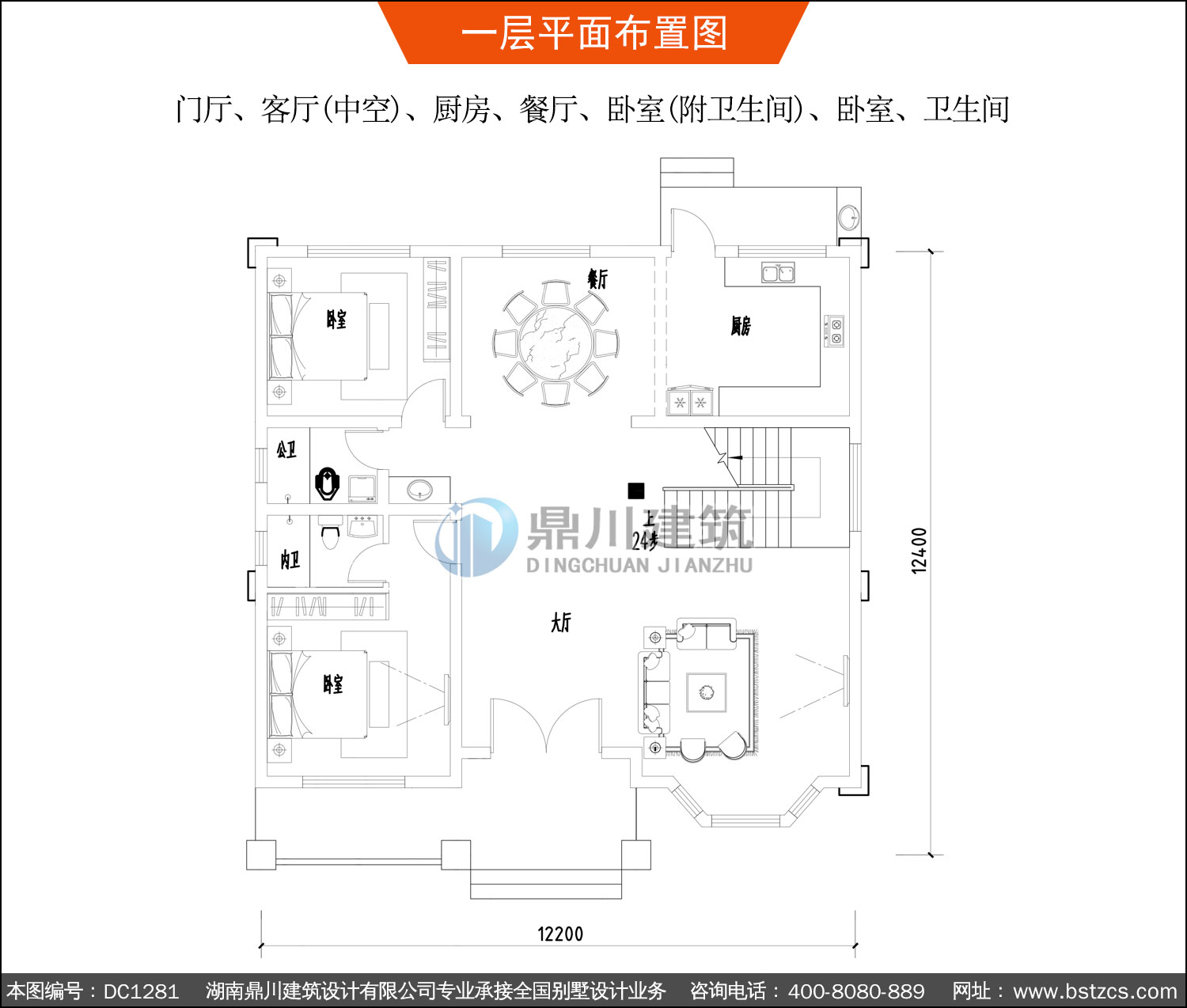 | 一 層: | 門廳、客廳(中空)、廚房、餐廳、臥室(附衛(wèi)生間)、臥室、衛(wèi)生間 | |||