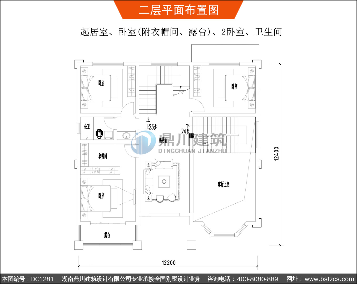 | 二 層: | 起居室、臥室(附衣帽間、露臺)、2臥室、衛(wèi)生間 | |||