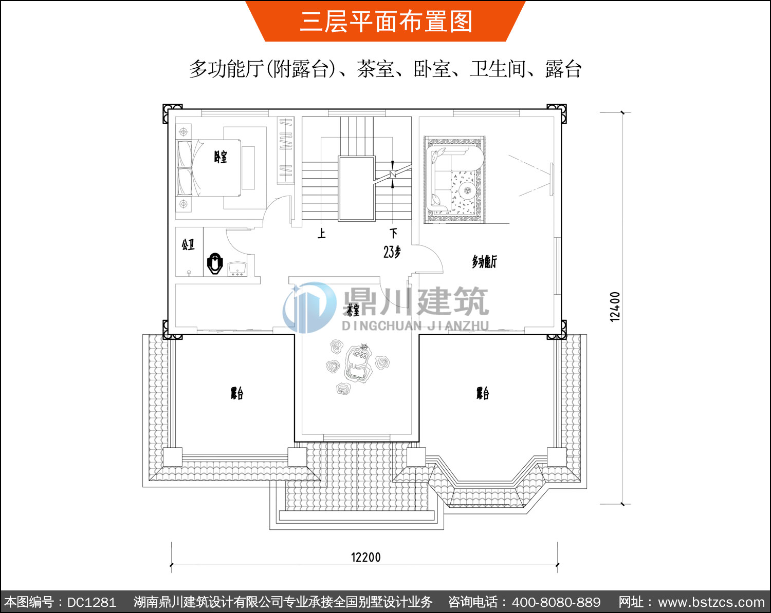 | 三 層: | 多功能廳(附露臺)、茶室、臥室、衛(wèi)生間、露臺 | |||