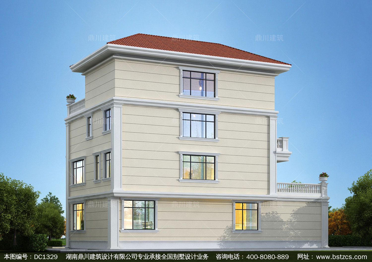 歐式四層復式別墅施工圖紙及效果圖_農村自建別墅設計,鼎川建筑
