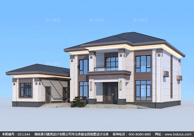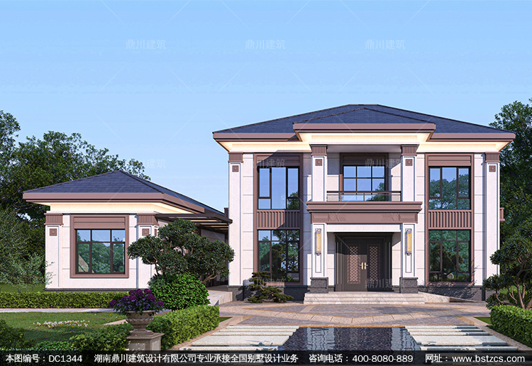 新中式二層帶附屬房別墅施工圖紙及效果圖_農(nóng)村自建別墅設(shè)計(jì),鼎川建筑