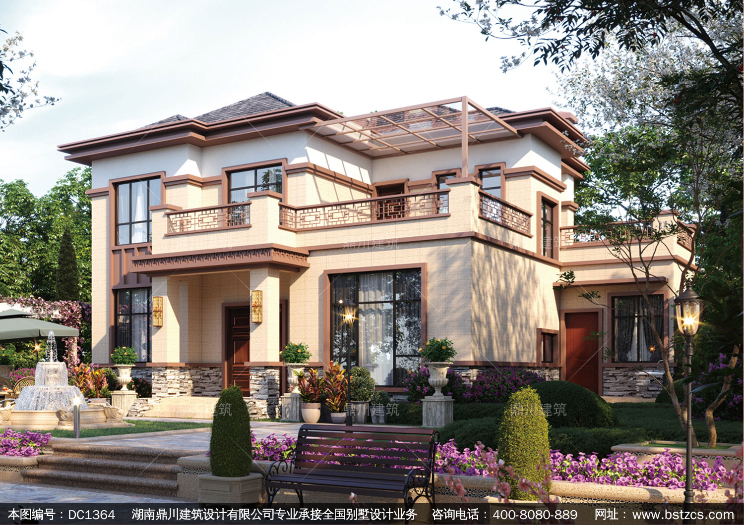 新中式二層別墅效果圖及施工圖紙_農(nóng)村自建別墅設(shè)計(jì),鼎川建筑