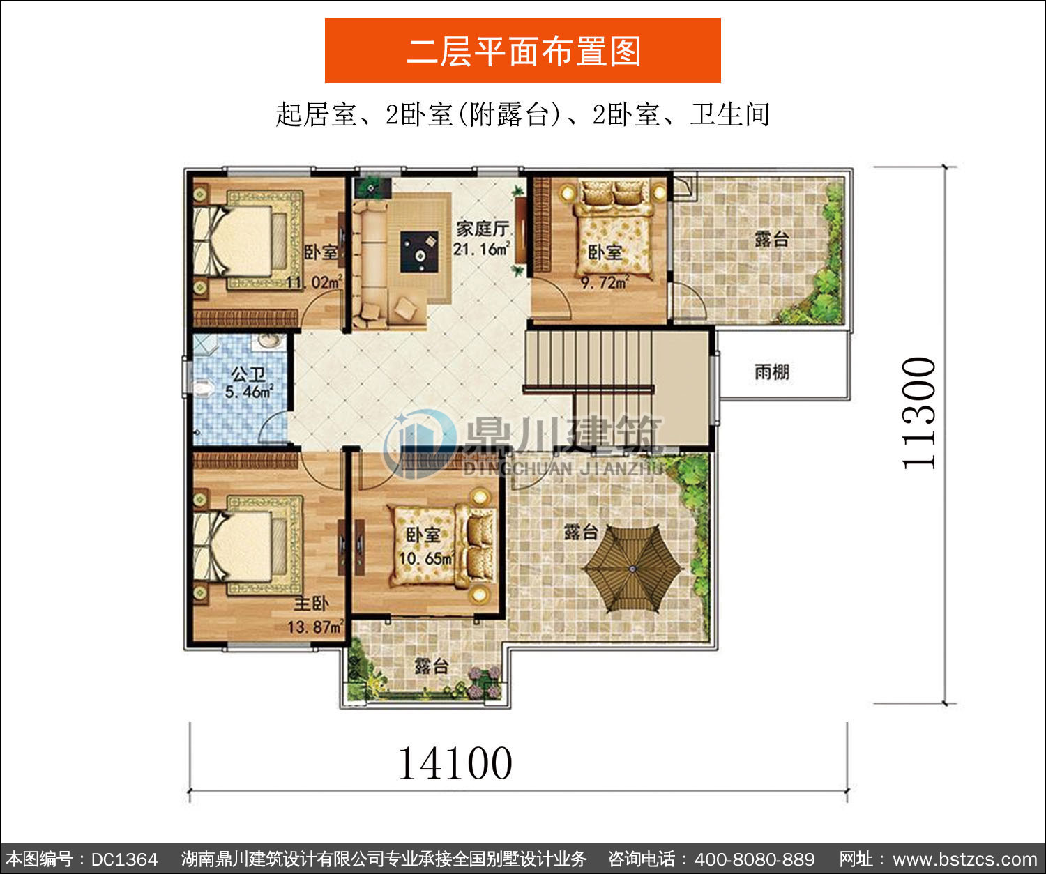 開間: 14.1米 進(jìn)深: 11.3米 占地面積: 132平方米 建筑面積: 226平方米