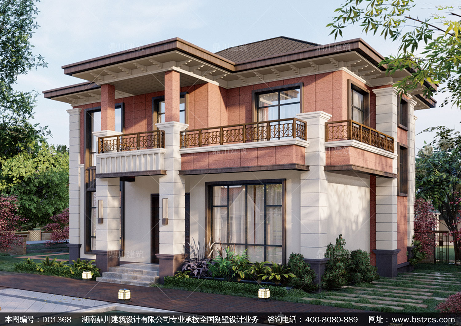 新中式二層別墅效果圖及施工圖紙_農(nóng)村自建別墅設(shè)計,鼎川建筑