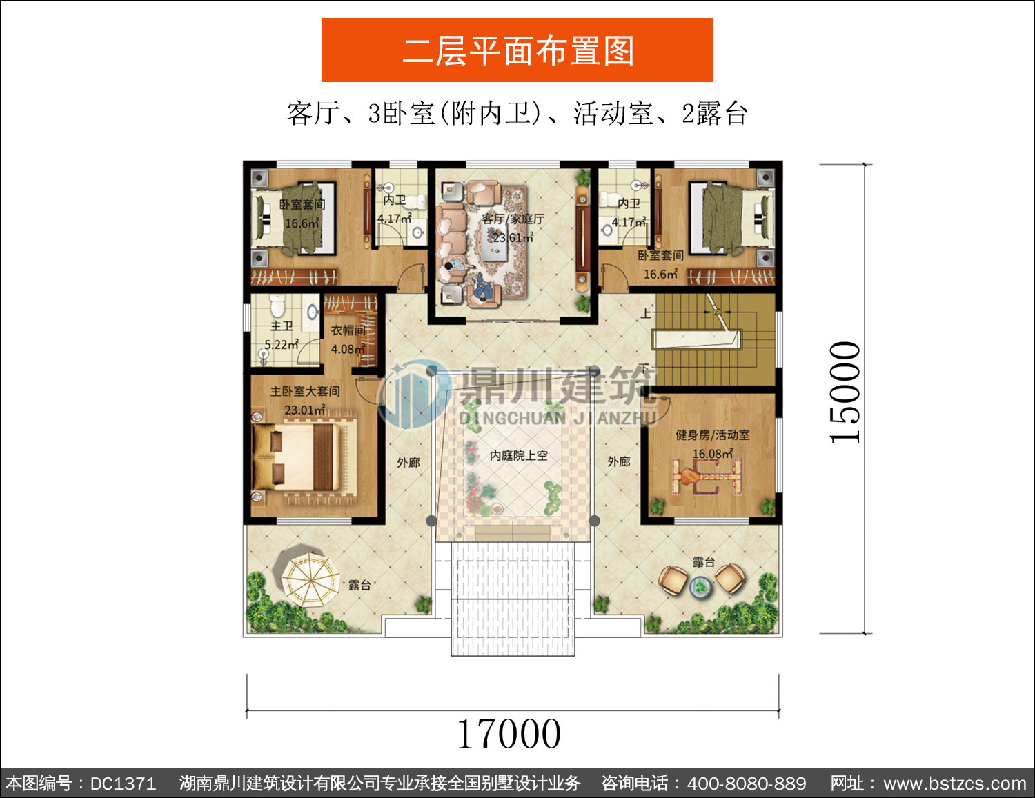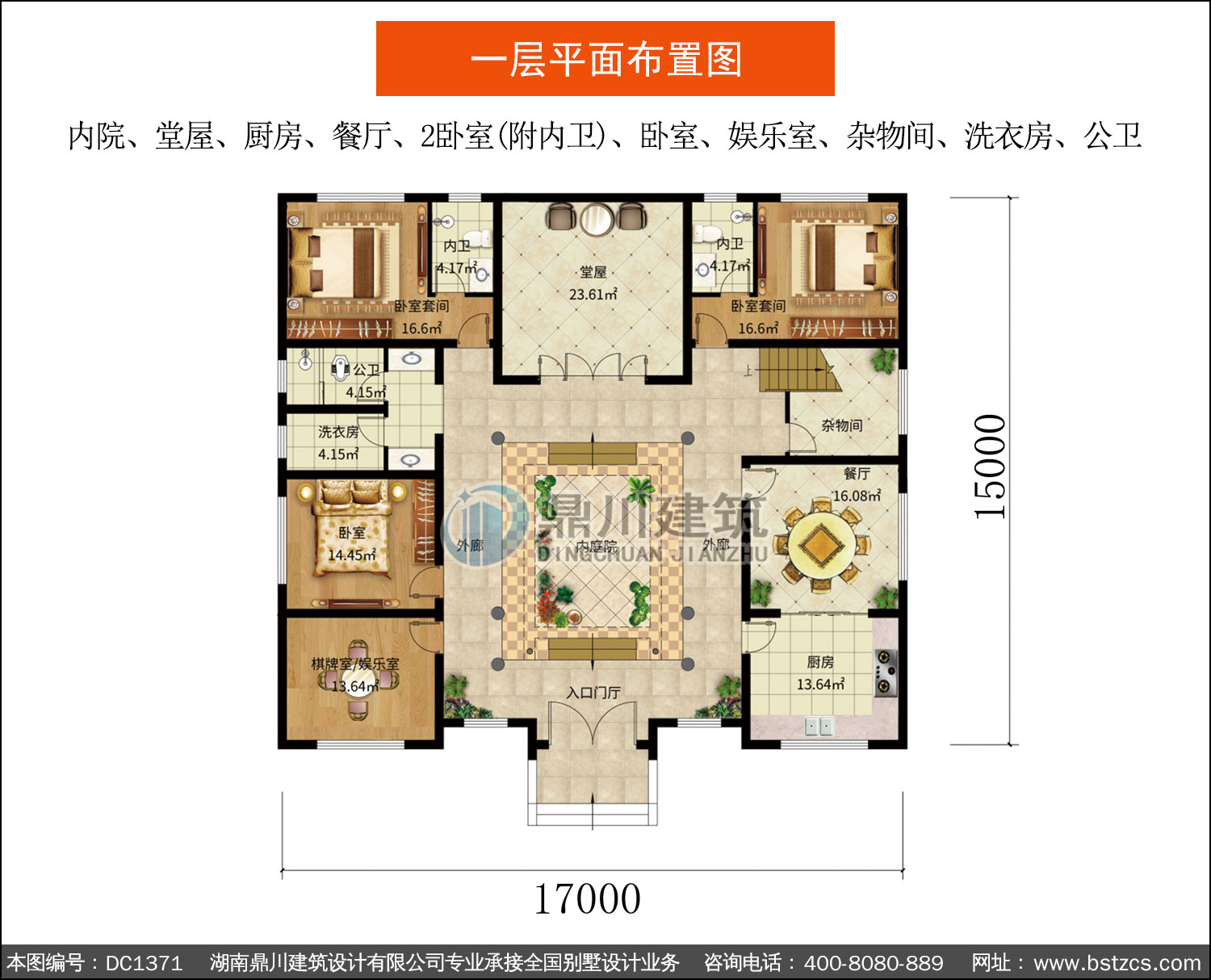 新農(nóng)村中式二層合院效果圖及施工圖紙_農(nóng)村自建別墅設(shè)計,鼎川建筑