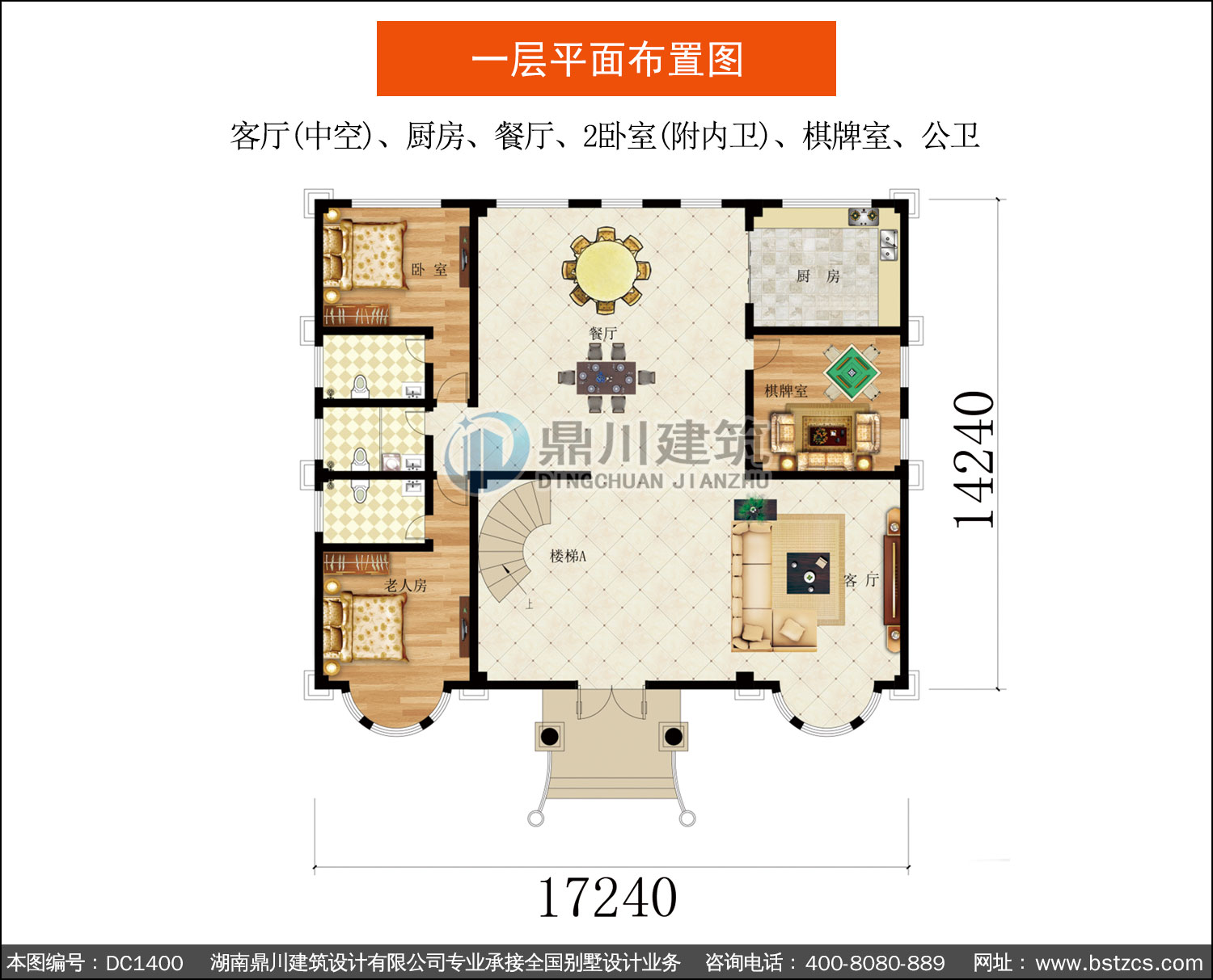 一 層: 客廳(中空)、廚房、餐廳、2臥室(附內(nèi)衛(wèi))、棋牌室、公衛(wèi)