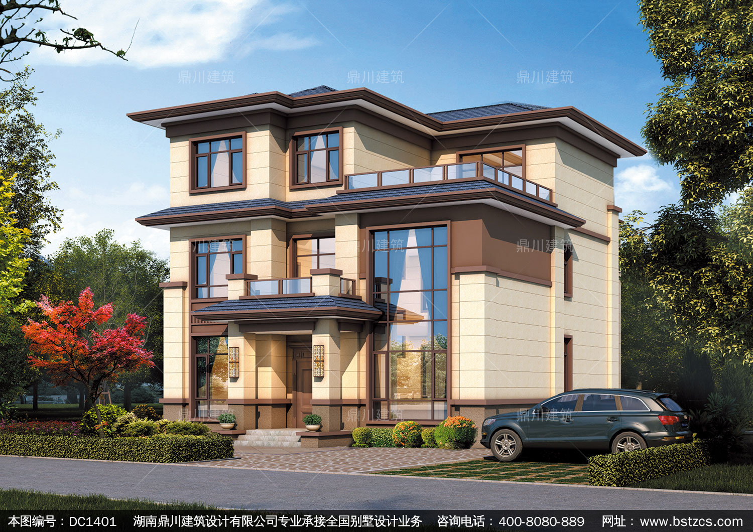 新中式三層別墅效果圖及施工圖紙_農(nóng)村自建別墅設(shè)計(jì),鼎川建筑