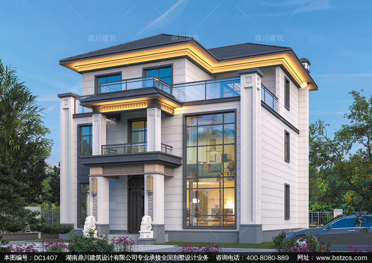 新中式三層別墅效果圖及施工圖紙_農(nóng)村自建別墅設(shè)計(jì),鼎川建筑