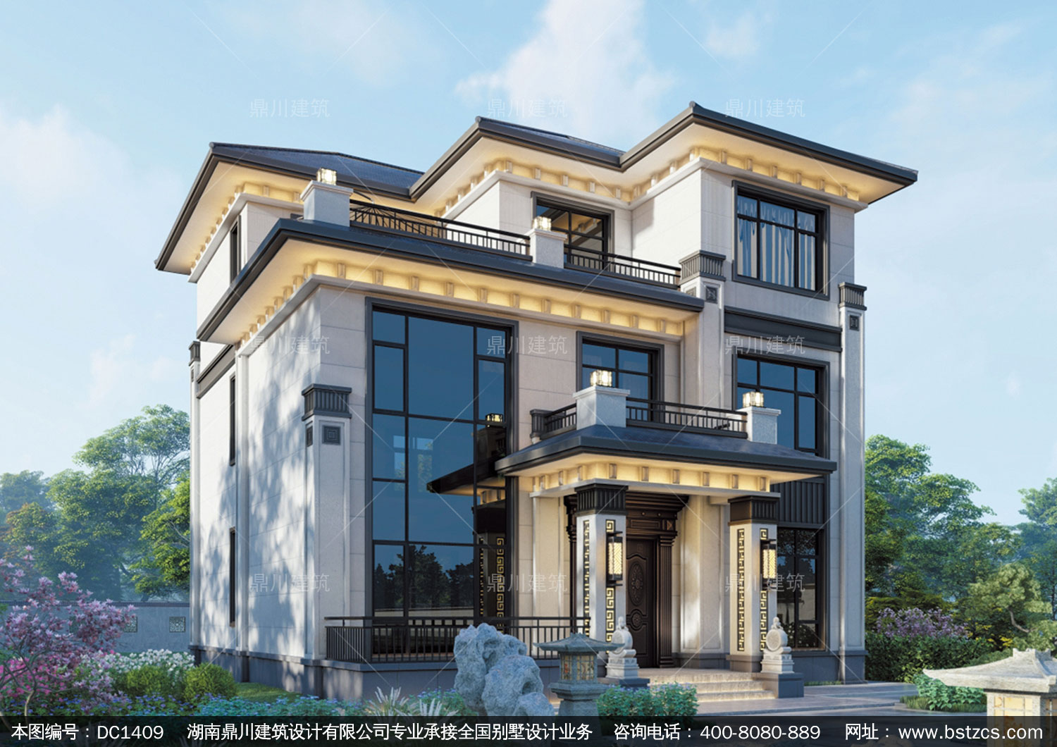 新中式三層別墅效果圖及施工圖紙_農(nóng)村自建別墅設(shè)計(jì),鼎川建筑